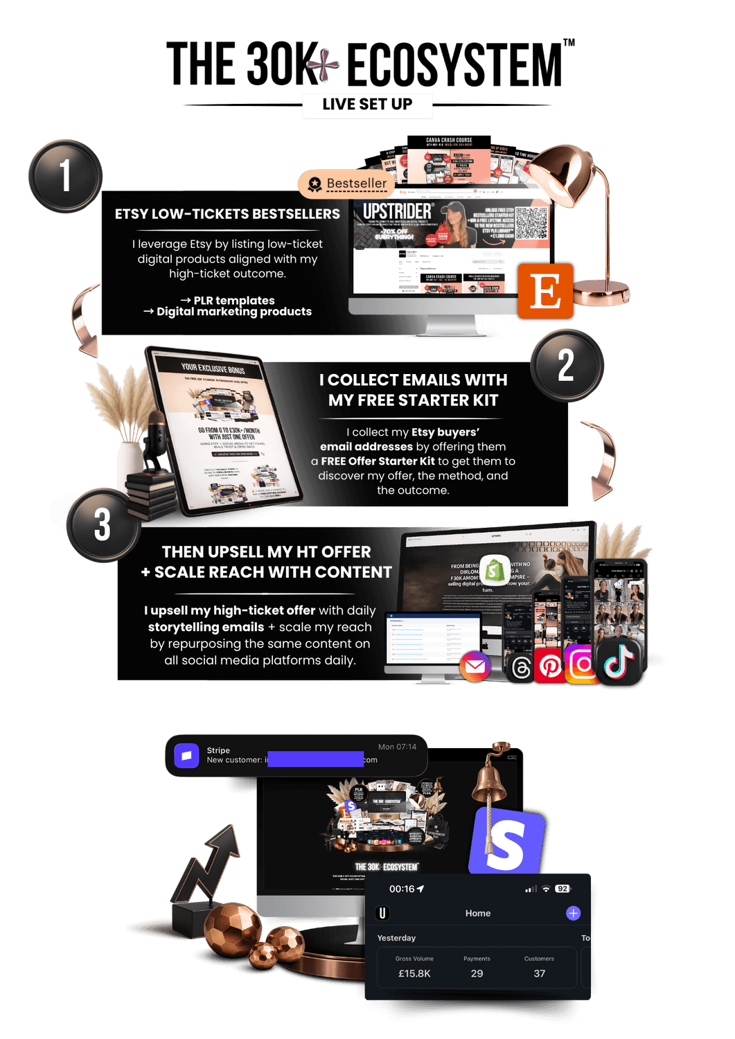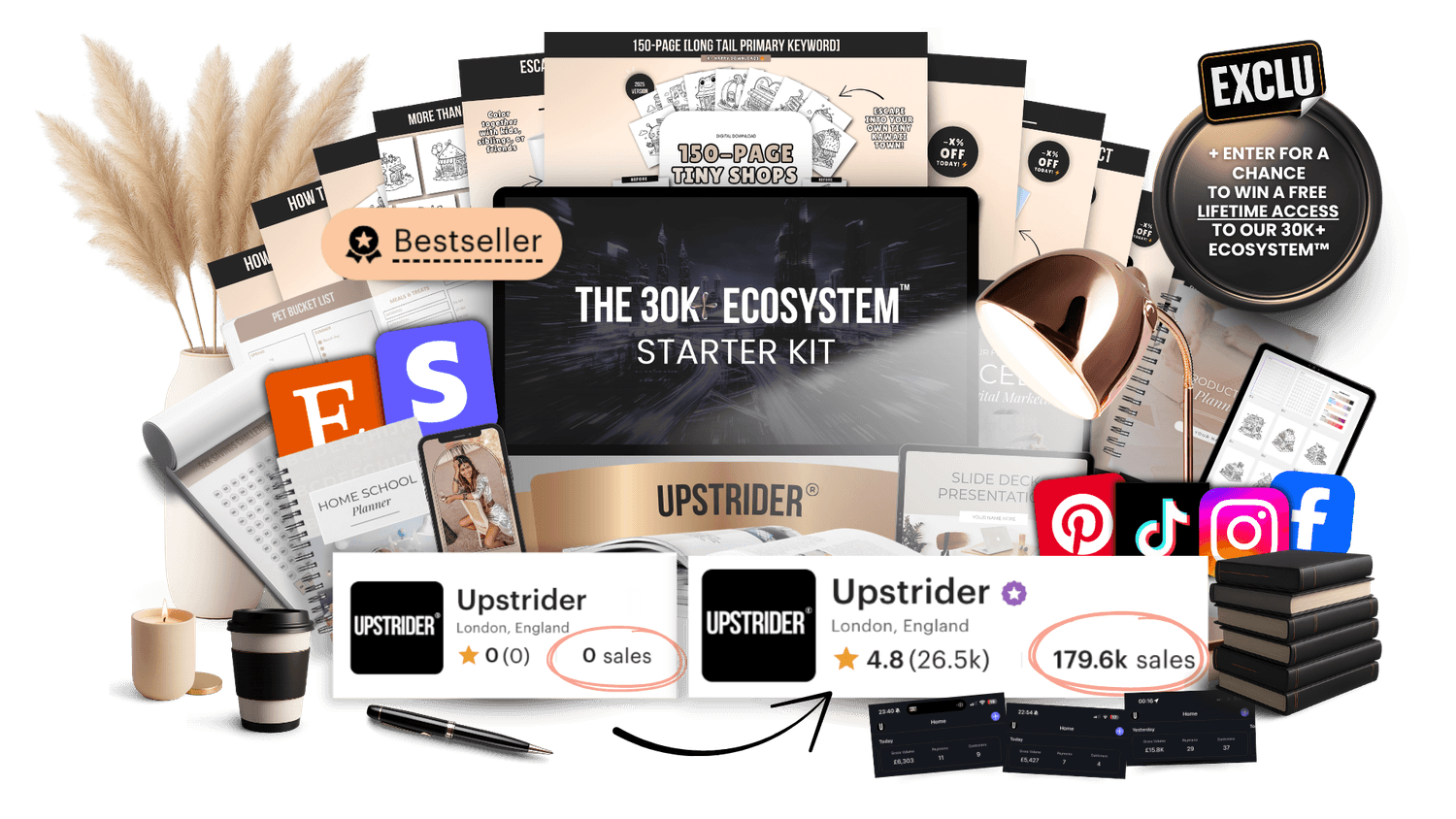 DISCOVER THE SAME SIMPLE SALES FUNNEL ECOSYSTEM THAT TOOK ANNE (FOUNDER OF UPSTRIDER®) FROM 0 TO CONSISTENT £30,000++/MONTH IN 90 DAYS FROM JUST ONE DIGITAL MARKETING OFFER – using low-ticket niche Etsy listings and daily storytelling content the right way to generate high-ticket sales on repeat.
